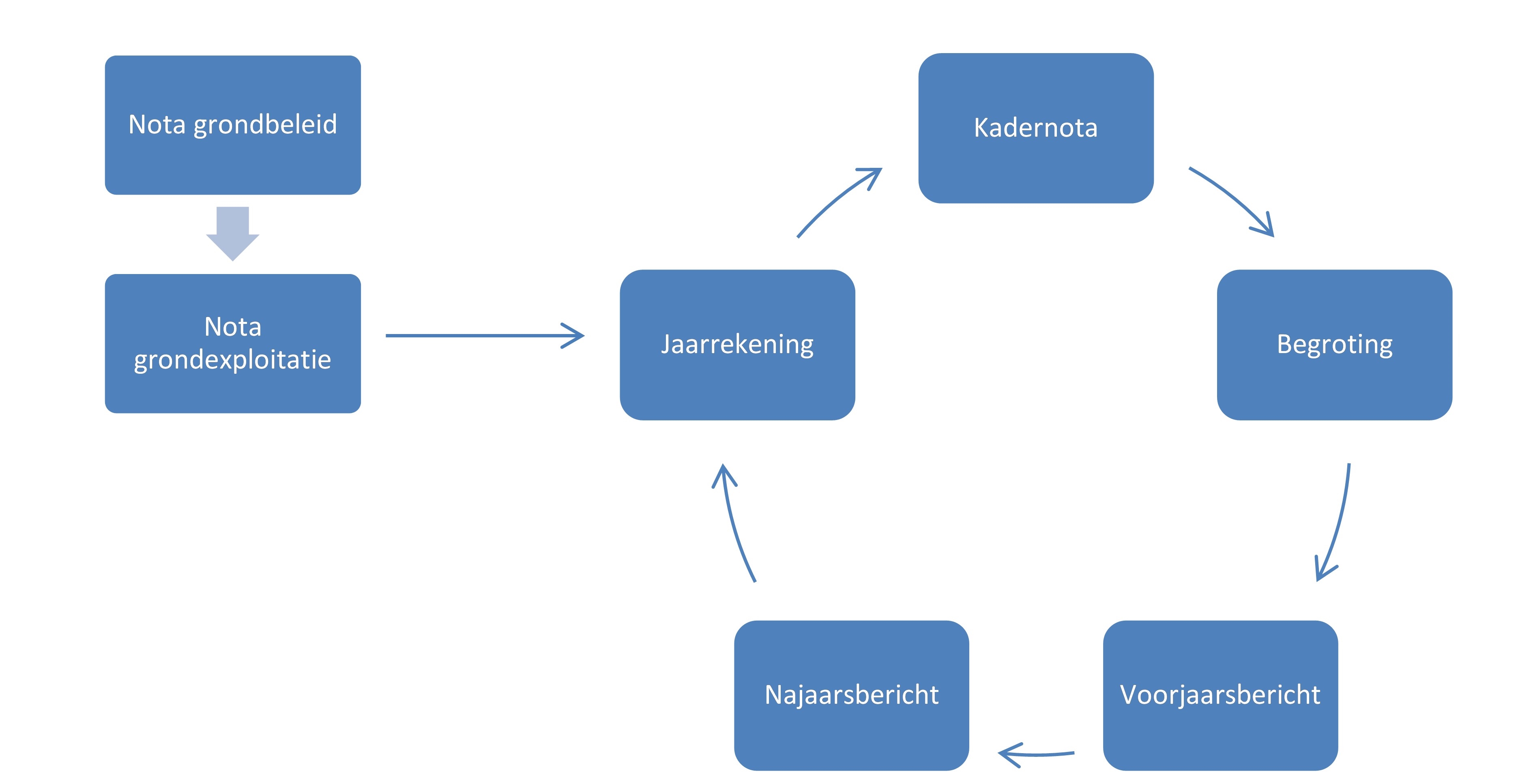 De relatie met de Nota grondbeleid, de Nota grondexploitatie en de P&C-cyclus is schematisch weergegeven in onderstaande diagram.