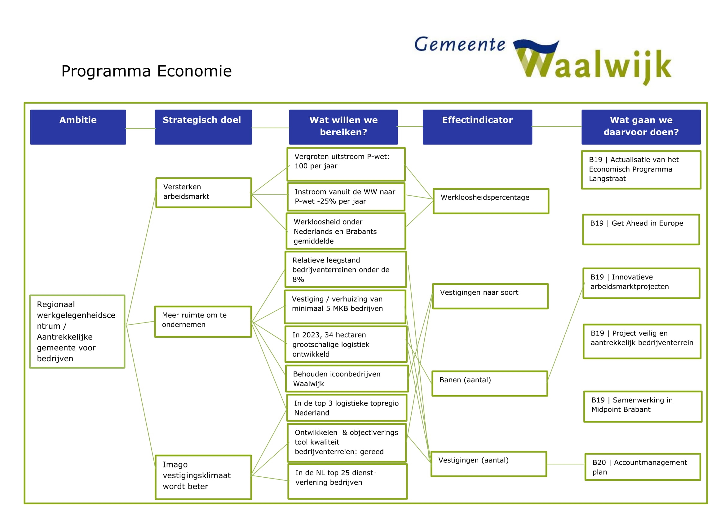 We pakken deze ambitie programmatisch op: onze doelstelling is duidelijk, de komende jaren werken we integraal en stap voor stap om dit te bereiken en sturen snel bij om kansen te benutten en om snel in te kunnen spelen op nieuwe ontwikkelingen. De vastgestelde centrumvisie is de basis voor het programma. Het te voeren beleid en achtergronden kunt u in meer detail lezen op pagina 34 (beleidsveld 3: economie).