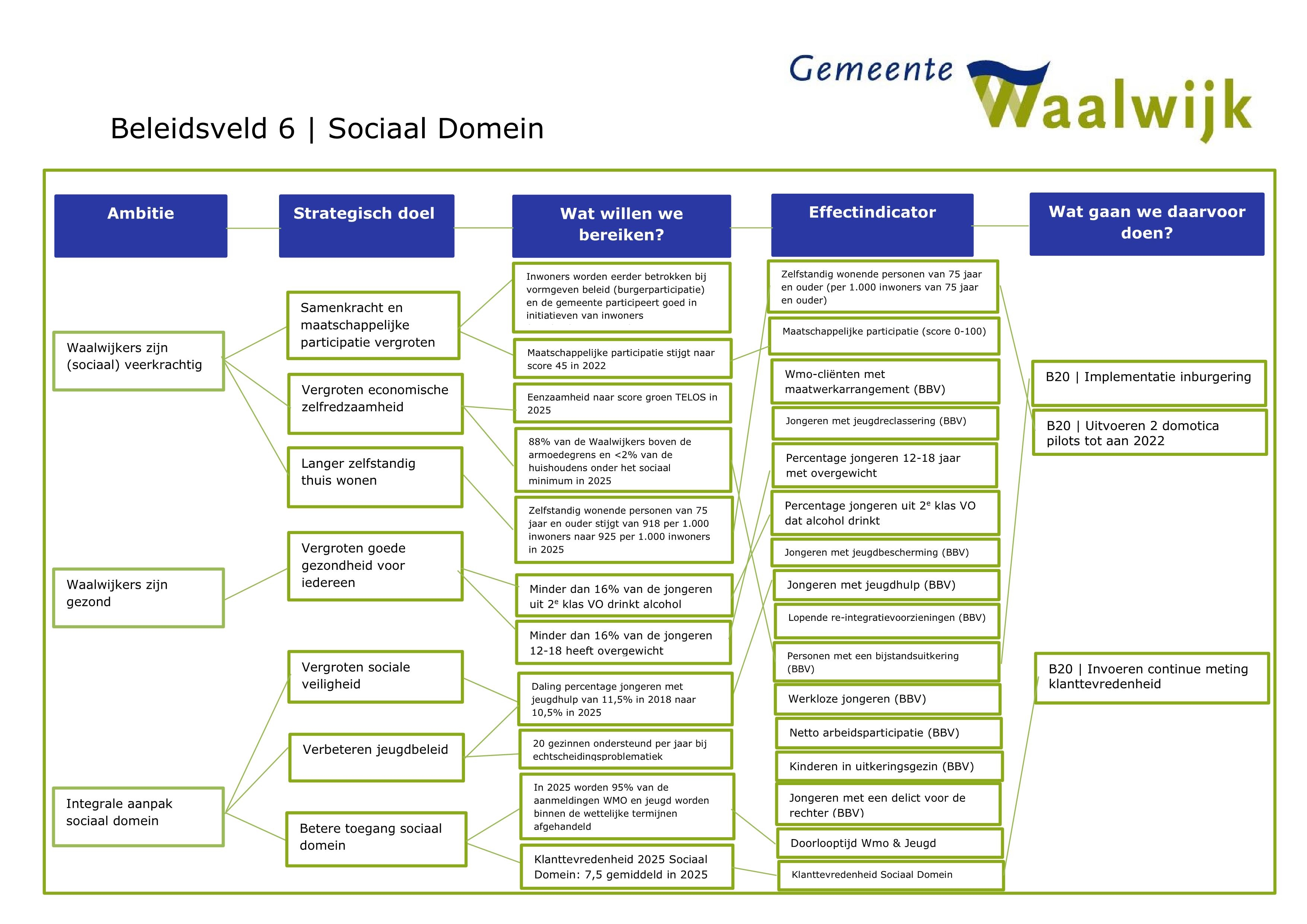 B20 | 6.023 Implementatie inburgering: In 2021 is er hard gewerkt aan de voorbereidingen op de komst van de nieuwe Wet inburgering 2021. In het voorjaar hebben we gewerkt aan een lokale uitwerking van deze Wet, een beleidskader. Dit beleidskader is op 10 juni 2021 door de gemeenteraad vastgesteld. Met het vaststellen van dit beleidskader zijn we met verschillende zaken gestart. Allereerst met de inkoop van het taalonderwijs voor onze nieuwe statushouders. Hiervoor hebben we, samen met de gemeente Heusden, een Europese aanbesteding doorlopen. Deze aanbesteding is in het najaar van 2021 succesvol afgerond door middel van een overeenkomst met taalaanbieder EchtNederlands. Deze partij gaat voor ons het taalonderwijs vormgeven. Parallel aan deze aanbesteding zijn we in de zomer van 2021 gestart met verschillende werkgroepen die gewerkt hebben aan tal van thema’s. Te denken valt aan ICT, AVG, werk, maatschappelijke participatie en ontzorging. In deze werkgroepen hebben verschillende partijen geparticipeerd om de inburgering in Waalwijk (en Heusden) vorm te geven. Dit proces is eind 2021 afgerond waarna we een start hebben gemaakt aan de praktische vertaling. Gedurende de uitwerking in de verschillende werkgroepen hebben we de inzet van Baanbrekers geconcretiseerd en heeft Baanbrekers dit vertaald in een offerte. Begin 2022 ligt deze ter besluitvorming aan het college voor. Met de inzet in 2021 liggen we op schema om in 2022 klaar te staan voor onze nieuwe statushouders.